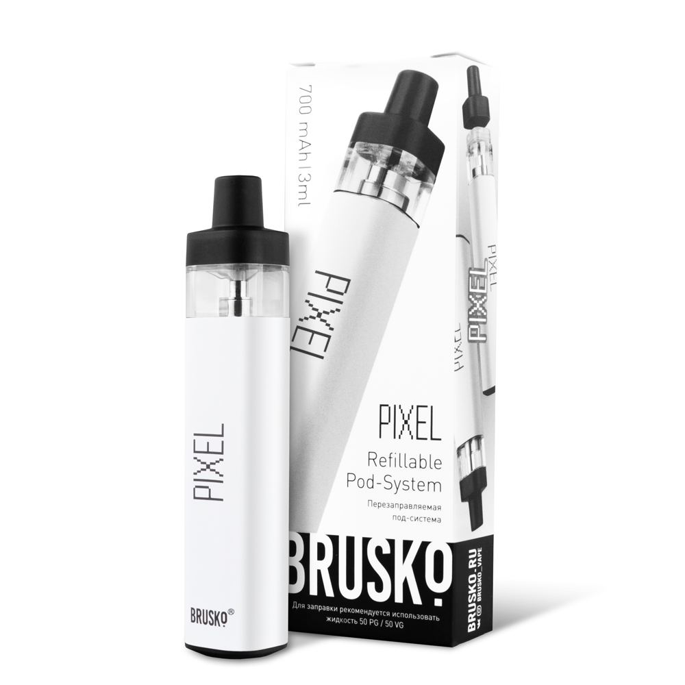 Перезаправляемая Под-Система Бруско Пиксель (Brusko Pixel) 700 mah, Белый - купить в Ртищево