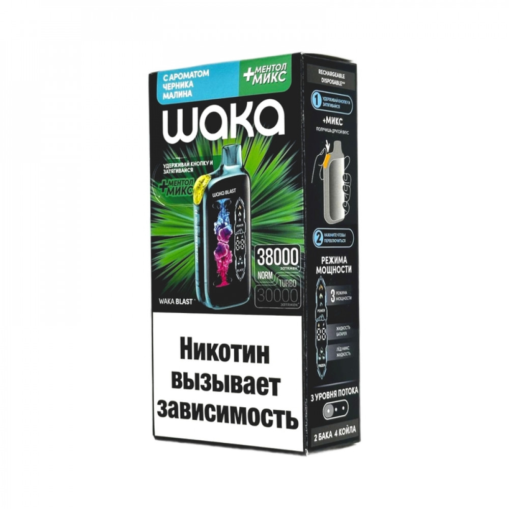 WAKA BLAST 38000 Hard - Черника малина + ментол микс - купить в Ртищево